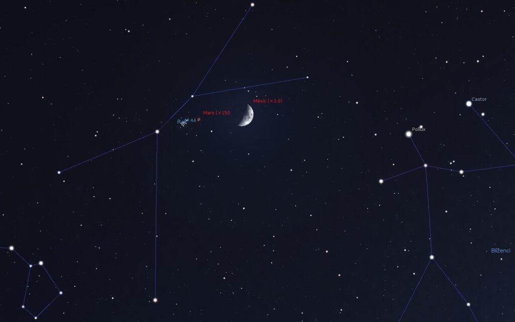 Přechod Marsu před otevřenou hvězdokupu Jesličky