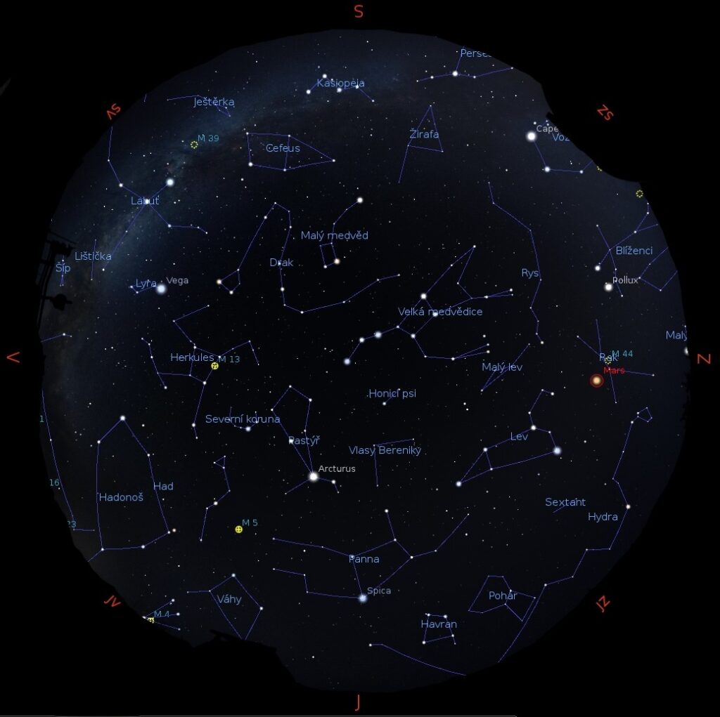 V pořadí pátý letošní astrosloupek přináší shrnutí nejzajímavějších úkazů na květnové obloze. Začátkem měsíce se zaměříme na přechod Marsu přes otevřenou hvězdokupu Jesličky. V noci z 5. na 6. května nastává maximum meteorického roje eta Akvarid. Podíváme se na stav večerní oblohy a na typická jarní souhvězdí.