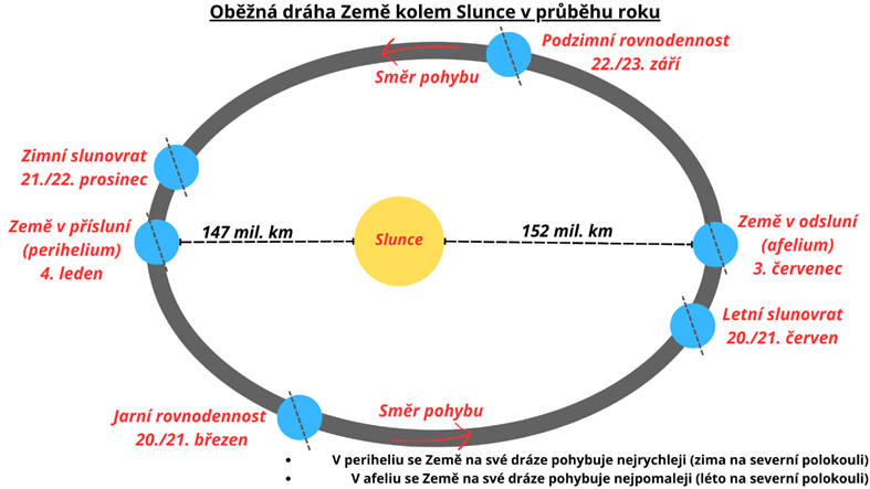 Naopak v přísluní, tedy nejblíže ke Slunci, se Země bude nacházet začátkem ledna, a to ve vzdálenosti zhruba 147 milionů kilometrů.