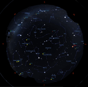 Prosinec přináší dlouhé noci ideální pro pozorování hvězdné oblohy – jasné hvězdy a planetární úkazy lze tedy spatřit již v brzkých večerních hodinách. Největšími událostmi jsou dobře viditelná Venuše, setkání Jupiteru, Měsíce a Uranu a 21. prosince, kdy nastane zimní slunovrat. Další událostí tohoto měsíce je meteorický roj Geminidy vrcholící v noci z 13. na 14. prosince. Stav oblohy Kolem 18:00 SEČ spatříme nad jihozápadním obzorem souhvězdí podzimní oblohy, jakými